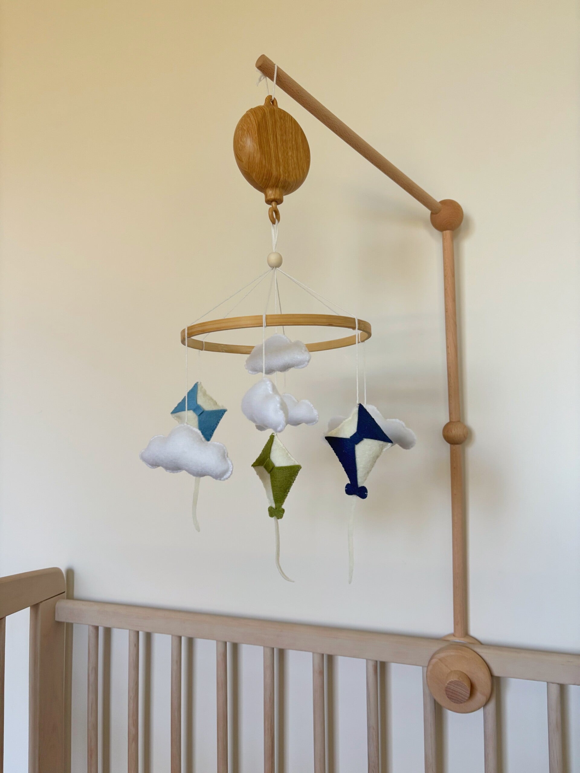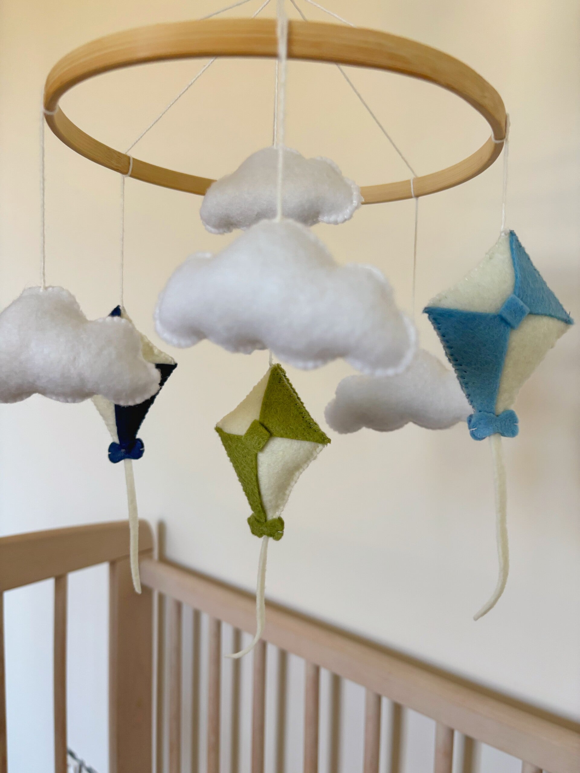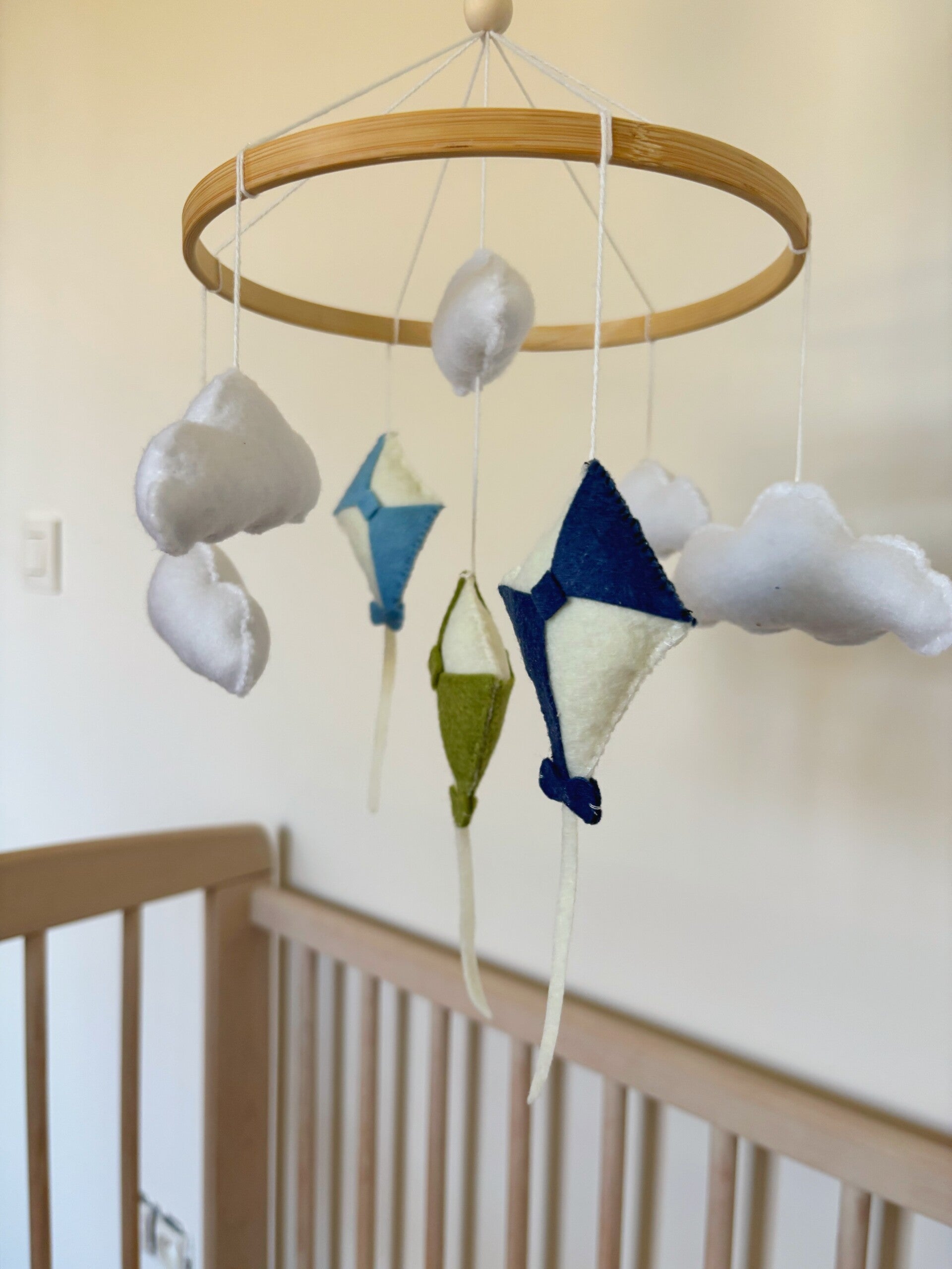 Handgemaakt mobiel, wolken en vliegers.